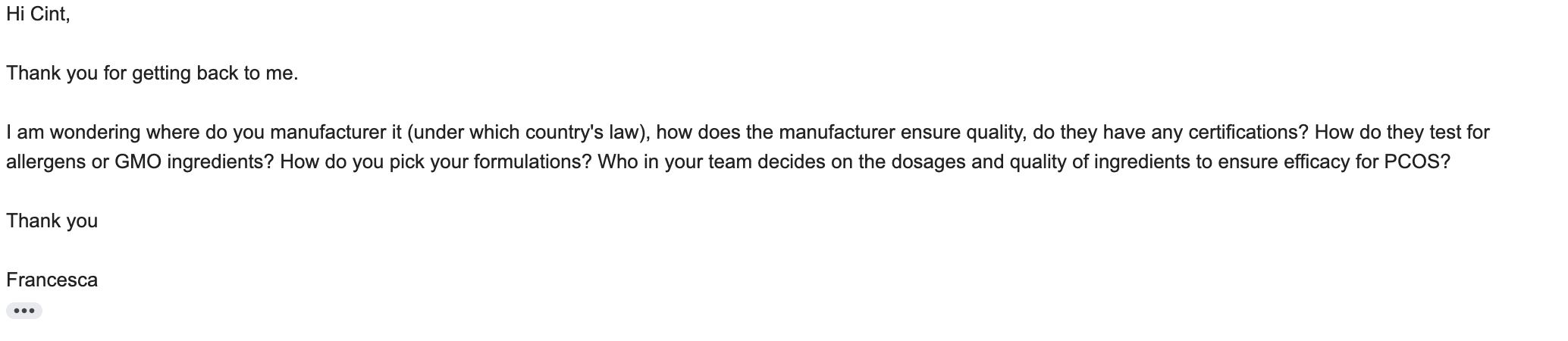If someone recommends a supplement company and you are unsure about their standards, email them. I did this exercise just recently to see if companies are willing to share: