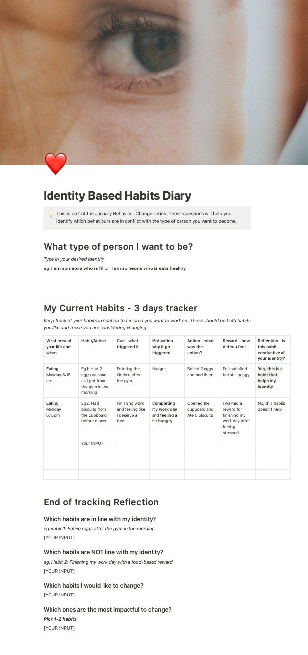 Find Template here. You can copy-paste it into your preferred note-taking or do it in writing. It can be done at the end of the day or when you feel like something it’s worthwhile tracking. The more you track, the better the insights.
